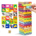 Best Offer 4 In 1 Kids Children Wooden Tumble Tower Stacking Game Puzzle Building Blocks with Colorful Animal with FREE Shipping Worldwide!